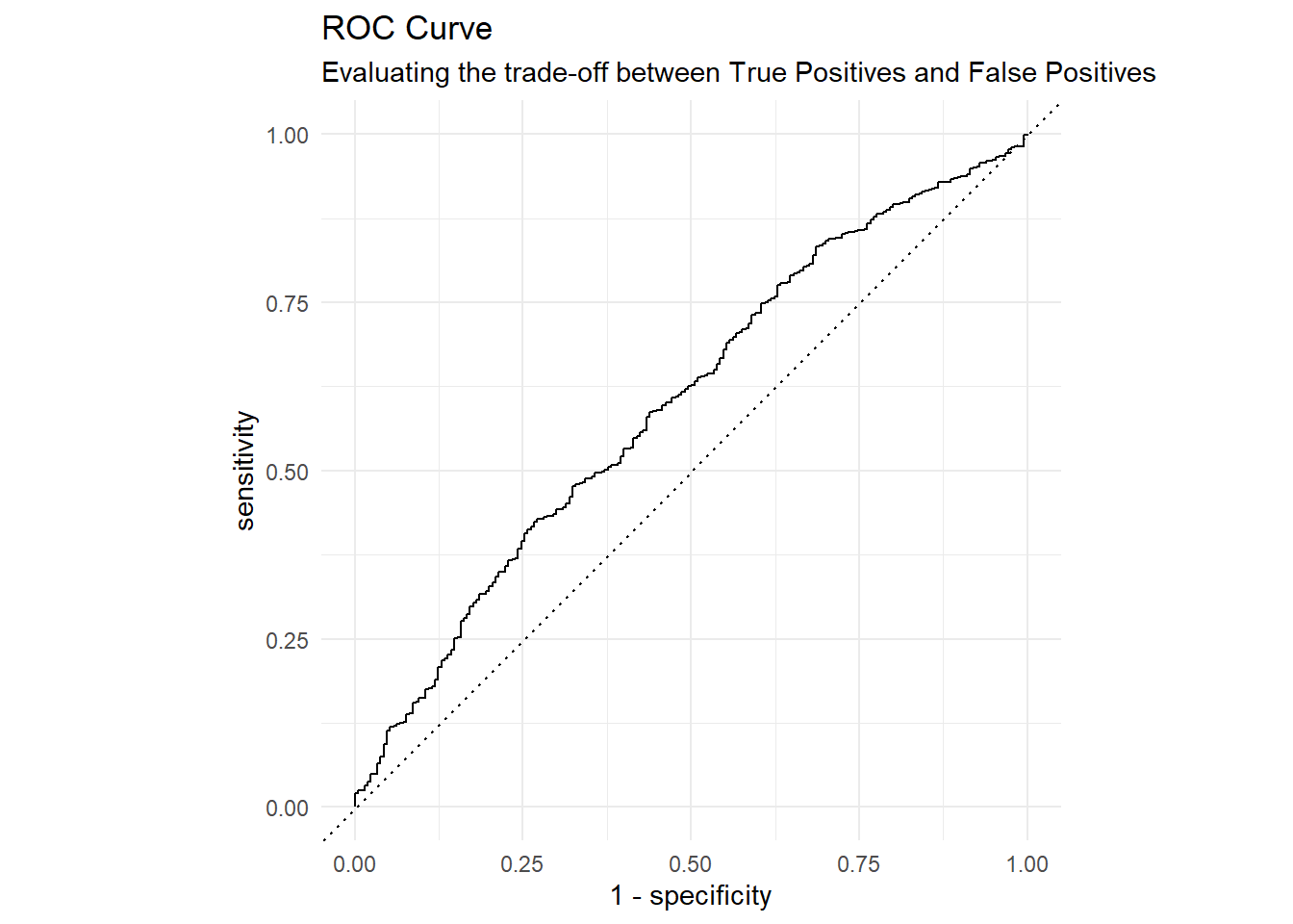 month_Feb, Mar, Apr) and specific times (hour) appear as gray bars, indicating they are not statistically significant. This suggests that tipping culture is relatively stable throughout the year and day.While the model successfully identifies key drivers like Distance, Local and Company (as shown in the Odds Ratio chart), its overall predictive power is modest (AUC ~0.60).