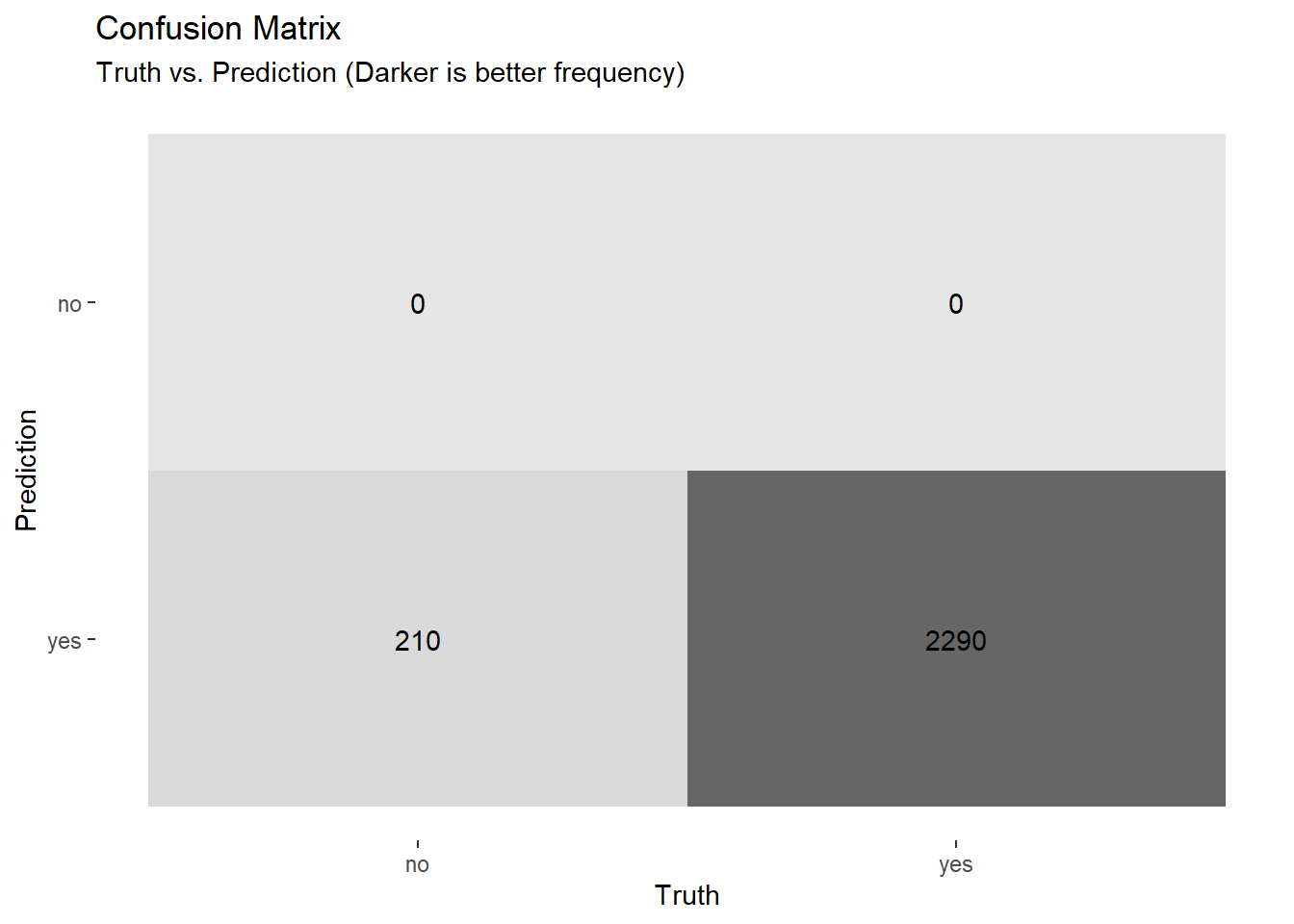 subtitle = "Truth vs. Prediction (Darker is better frequency)"